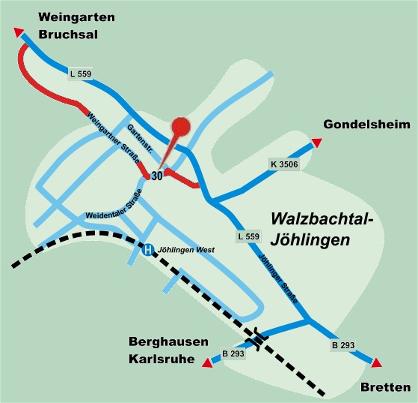 - von Norden über Ausfahrt Bruchsal und dann über Weingarten,
